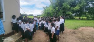 3. Students line-up for drinking clean water
